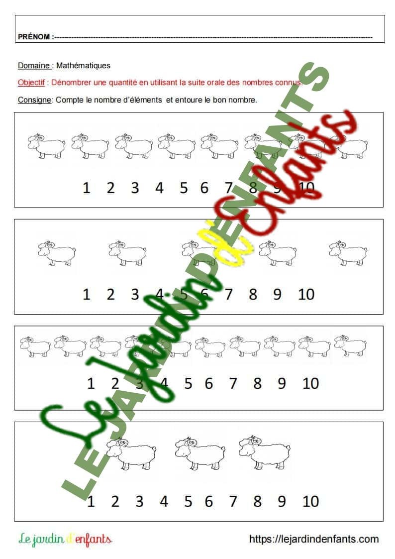 1 fiche : Compter les moutons puis entourer le nombre qui correspond  (1 à 10)