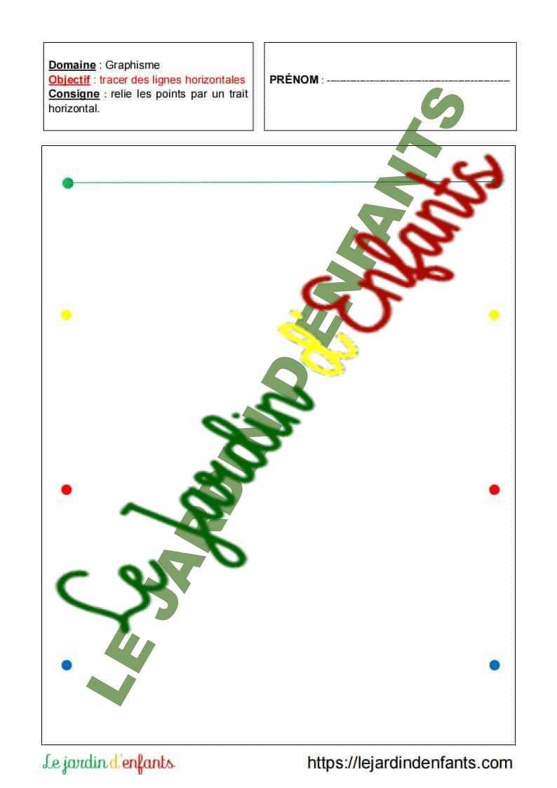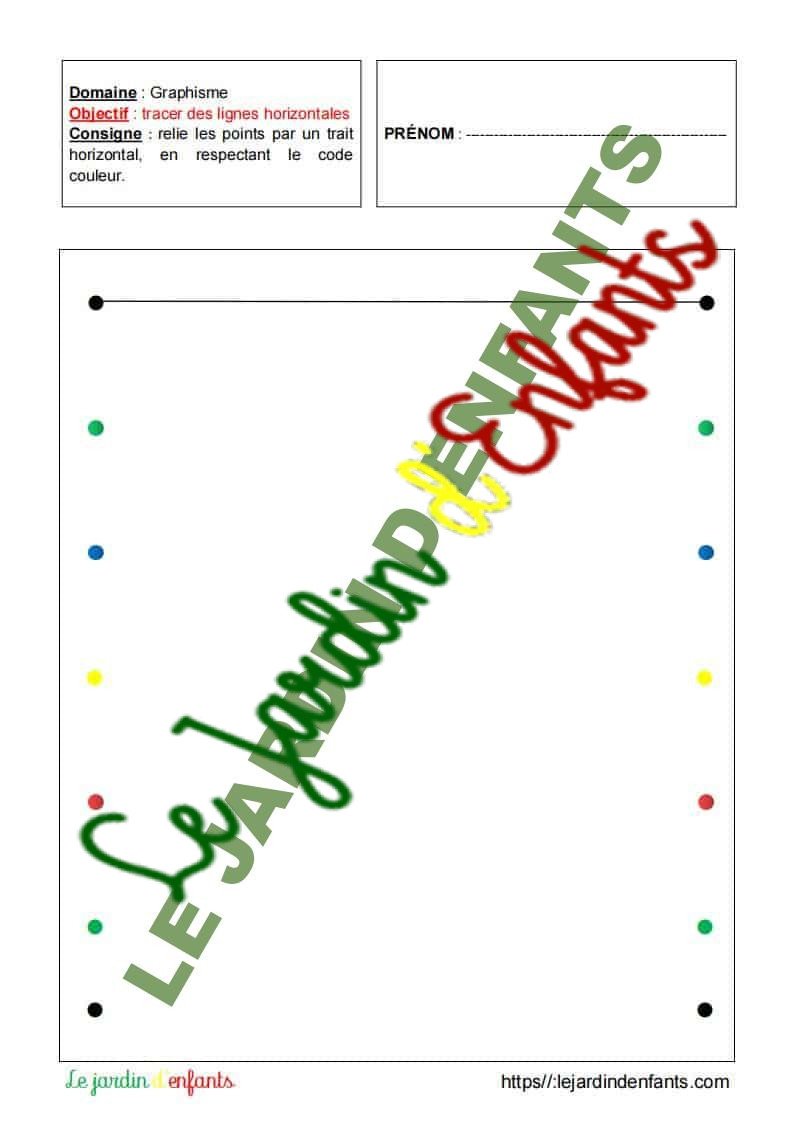 L’inscription du prénom et de la date peut être réalisée à la fin de l’exercice, dans la mesure où l’objectif principal est de vérifier la compréhension et le respect de la consigne. L’enfant peut compléter la date à l’aide d’un modèle.