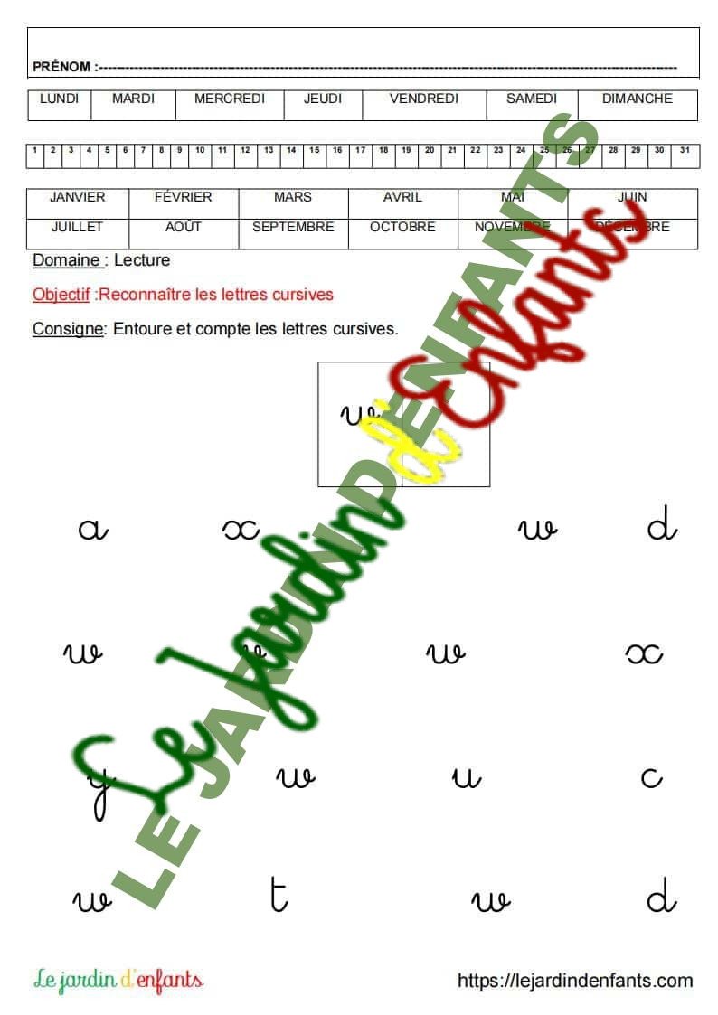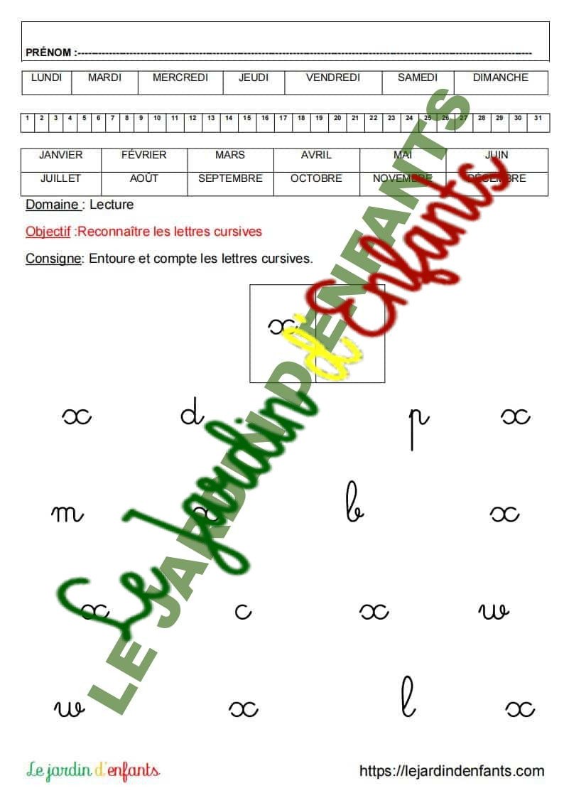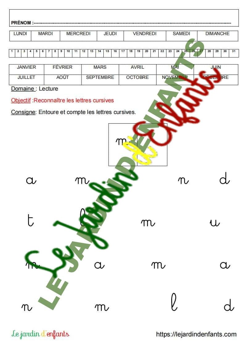 • L’inscription du prénom et de la date peut être réalisée à la fin de l’exercice, dans la mesure où l’objectif principal est de vérifier la compréhension et le respect de la consigne. L’enfant complète la date à l’aide d’un modèle.