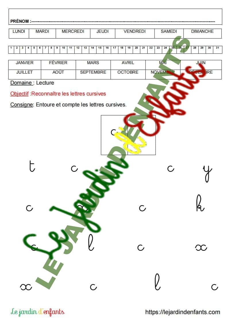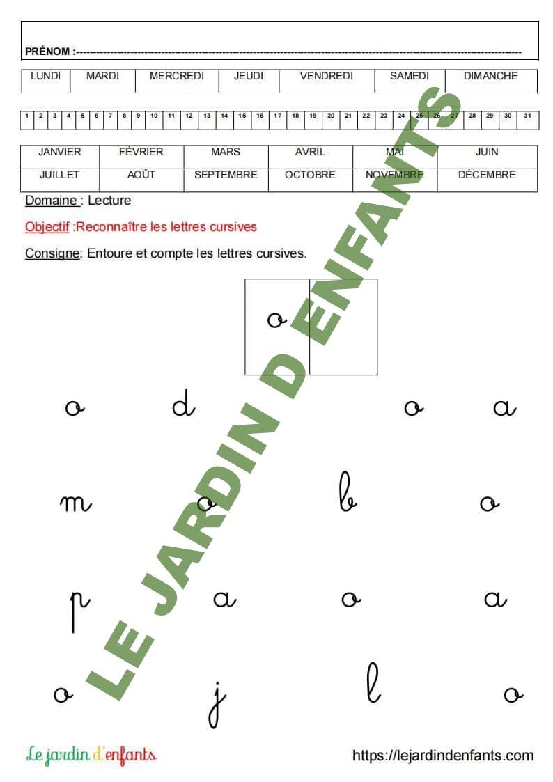 • L’inscription du prénom et de la date peut être réalisée à la fin de l’exercice, dans la mesure où l’objectif principal est de vérifier la compréhension et le respect de la consigne. L’enfant complète la date à l’aide d’un modèle.