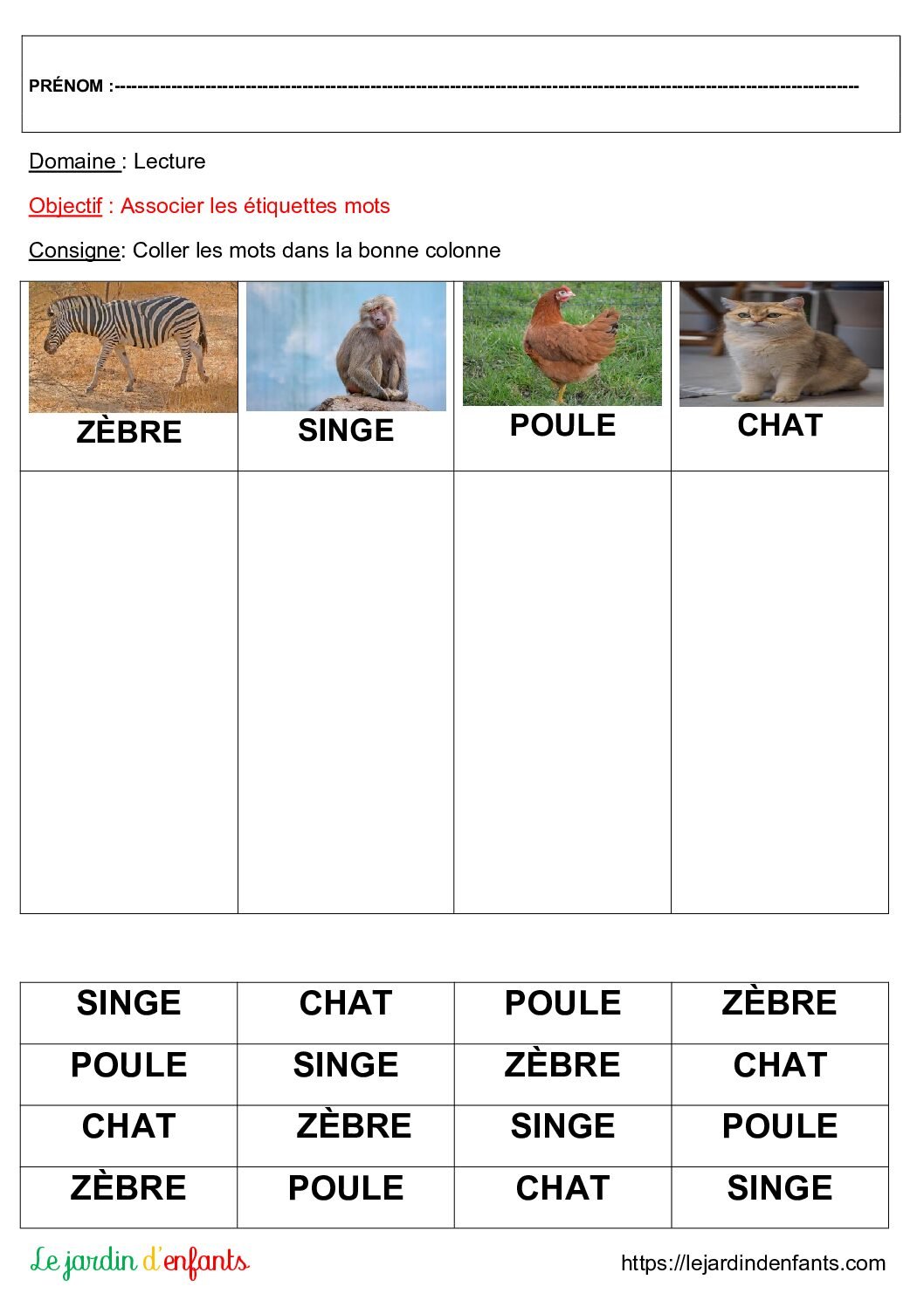1 fiche : Découper puis coller les étiquettes  dans la bonne colonne